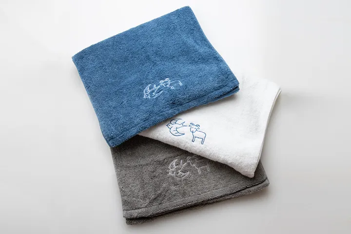 原料の綿(わた、オーガニックコットン)から、人と環境に配慮した工法や設備、化学薬品の使用をできるだけ抑えた製法、高感度機械による最終検針まで、数々のこだわりによって製作されています。泉州独自の「後晒(あとざらし)」製法は、水洗いを繰り返したあと仕上げるため、糊や不純物をしっかり洗い落としています。水通し(予洗い)不要で使え、使い始めから高い吸水性を実感できるタオルです。 - ヤギの素材調達、原料加工ネットワークによって、スーパーZERO®をタオル素材に採用することができました。スーパーZERO®は世界初の特殊撚糸工法で作られた糸で、糸の繊維間に空気をたくさん含ませるという最先端技術を投入しています。