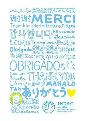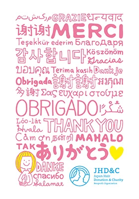 JHD&C ヘアドネ サンキューカードの二次利用は禁止です。ご自身のヘアドネーションの記念としてご利用ください。