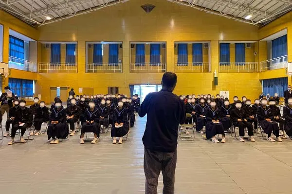 毎年12月4日から10日の「人権週間」には、さまざまなジャンルの講師を招いて人権学習の時間を設けている牧園中学校。