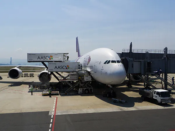 今回のタイの工場見学が、職員にとって人生初の海外。関西空港からバンコク空港へは約5時間の空の旅です。
